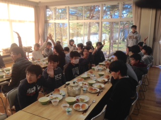 朝礼を済ませ朝食。