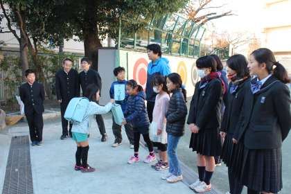 生徒会役員会が、「世田谷杜の学び舎」の若林小学校児童会に協力し、若林小学校校門前でユニセフの募金活動を行いました。明日の朝も行います。金曜日には城山小学校でも実施します。ご協力よろしくお願いします。