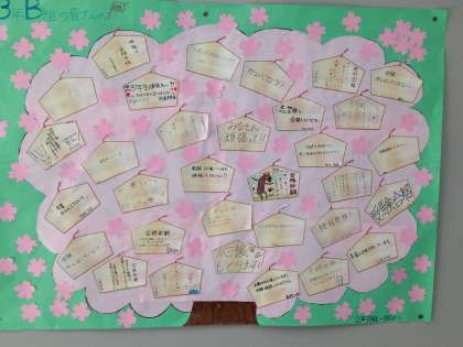 3年生はいよいよ明後日から1か月以上の間、それぞれの進路目指して高校入試が始まります。それに合わせて1,2年生各クラスから3年生の兄弟学級に合格祈願の寄せ書きが贈られました。