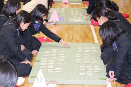 28日6校時、2年生の百人一首大会が行われました。1年生の時よりも上の句で取れる札が増えた人が多かったと思います。白熱した大会になりました。