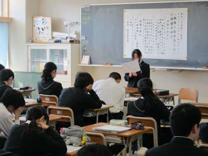 14日3校時、全校で教科「日本語」公開授業を行いました。1年生「生きることについて考える(二)」(哲学)、2年生「ことばと文化」(表現)、3年生「『道』の文化」(日本文化)、双葉学級「ことばと文化」(表現)を実施しました。