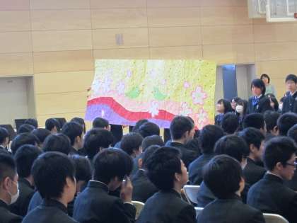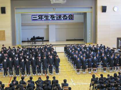 13日午後、3年生を送る会が行われました。1,2年生から感謝の言葉と歌・ちぎり絵。3年生から後輩に送る言葉と歌・メッセージの書かれた手紙が送られました。その後、演劇部と吹奏楽部の発表もありました。