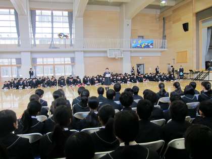 4月9日、入学して3日目です。3、4校時に対面式が行われ2,3年生の代表生徒から委員会活動や部活動についての詳しい説明がありました。