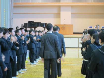4月28日6校時、平成27年度離任式が行われました。今年度転任された3名の先生方がお見えになり、生徒の皆さんに離任のご挨拶をしてくれました。どの先生方も世田谷中学校のすばらしさを話してくださいました。その気持ちにこたえられるよう、今よりさらにすばらしい学校を目指し全校生徒で協力していきましょう。