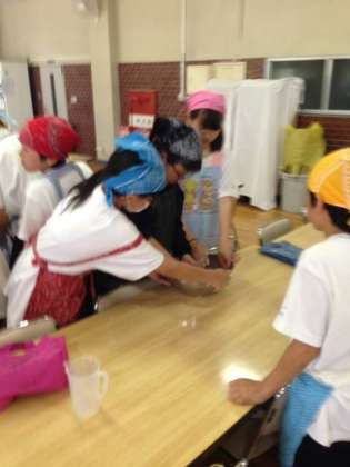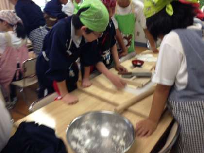 学園に戻った後は、夕食で食べるうどん作りをしました。おやつを挟んで、うどんをこねる作業と切る作業を行いました。おいしく作れたかどうか夕食がとても楽しみです。
