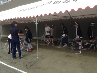 先生方はグランド整備、係生徒は会場準備、PTA役員の皆様も受付の準備をしてくださっています。