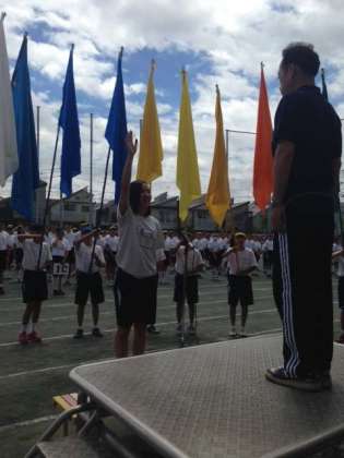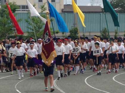 予定より1時間遅れて10時10分に入場行進が始まり運動会がスタートしました。