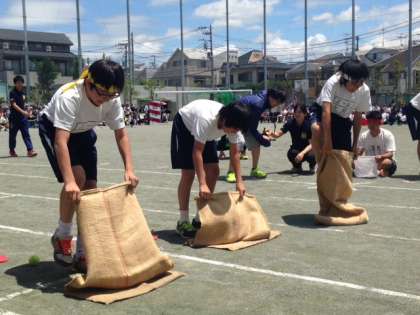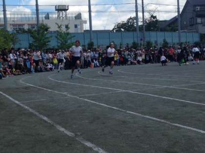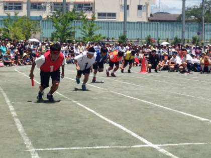 天候が良くなってきました。100M走、アスレチックレース、1年全員リレーの様子です。