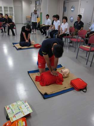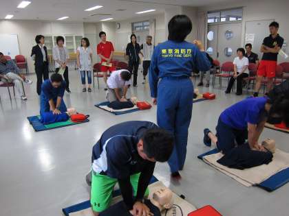 6月26日午後、世田谷消防署の署員の方を講師にお招きし、教職員のための「心肺蘇生講習会」を行いました。万が一の時に備え、AEDを使用した応急救護訓練と火災時の初期消火に関する講習を行いました。