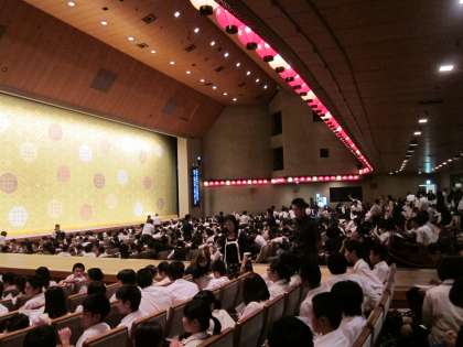 8日、3年生は「歌舞伎鑑賞教室」で国立劇場に行きました。解説「歌舞伎の見方」で、歌舞伎の基本的な事柄を学んだ後、「義経千本桜」を鑑賞しました。世田谷中の座席は1階の花道のすぐ脇でしたので、花道を行き来する役者が間近で見られ、臨場感あふれる舞台が鑑賞できました。