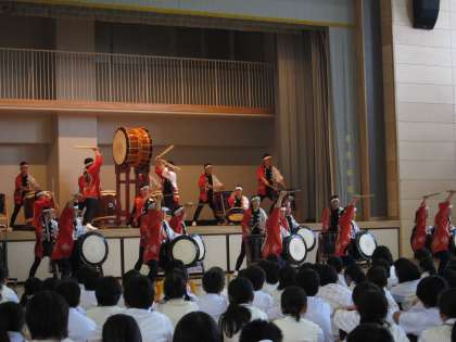 明星学園高校和太鼓部の皆さんにご来校いただき、公演をしていただきました。体育館の床が震えるほどの迫力に圧倒されました。全国レベルの演奏に胸打たれました。ありがとうございました。