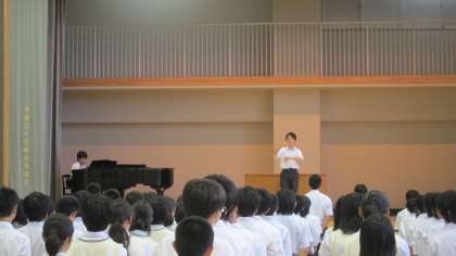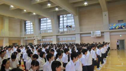 7月17日、1学期終業式が行われました。校長先生から、各自1学期を振り返りまた新たな目標を設定して取り組むために、通知表の担任の先生からの所見もぜひ参考にしてほしいということと、有意義な夏休みを過ごしてほしいという話がありました。その後校歌斉唱、生活指導主任から夏休みの過ごし方についての諸注意がありました。