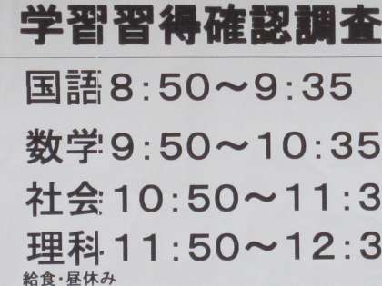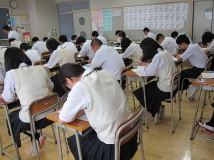 4日、3年の生徒は1校時〜5校時まで「学習習得確認調査」を行いました。大切な2学期、自分の力を知り、それをもとに学習計画を立て地道に努力することが必要です。