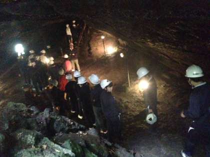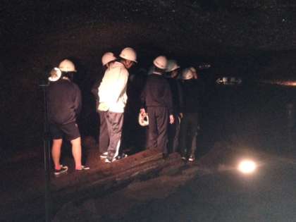 こうもり穴の見学です。天井が徐々に低くなり、這うようにしながら進まなくてはいけない所もあり、大変でした。