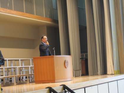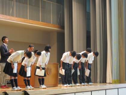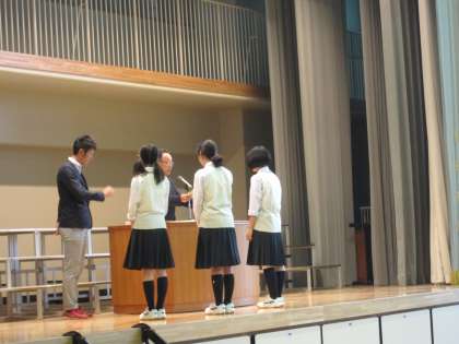 5日、10月の全校朝礼が行われました。校長先生からは、9月に行われた3年生や双葉学級の宿泊行事のこと、今年度ちょうど折り返し点を過ぎこの後の学芸発表会に向けて学級で力を合わせ良い合唱を創り上げましょうということ、「人格の完成」についてのお話がありました。続いて世田谷区競書会入選者、日本武道館書写書道大展覧会入賞者の表彰、さらに先日の世田谷区立中学校陸上競技大会で第1位をとった、1年生男子100×4リレー他、入賞者の表彰がありました。