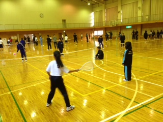 到着後は、合同レクでミニテニス大会です。
