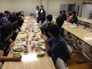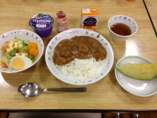 今日は、三つ峠登山、合同レク(ミニテニス大会)と体力を使い、お腹もすきました。 今日の夕食はカレーライス。お腹いっぱいいただきました。