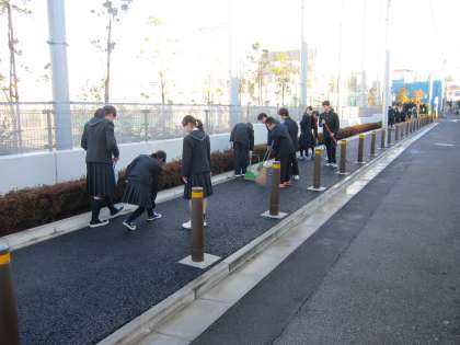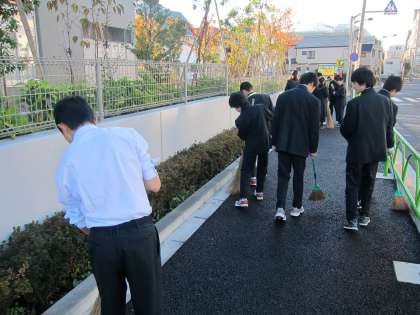 本日(27日)朝、1年生のクリーンデーが行われました。寒い朝にも関わらず多くの生徒が参加しました。濡れて道路に貼りついた落ち葉に苦戦しながらも、学校周辺の美化に励んでくれました。