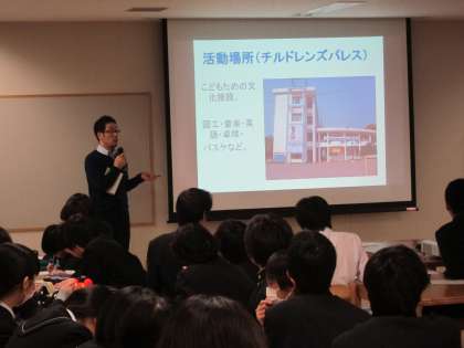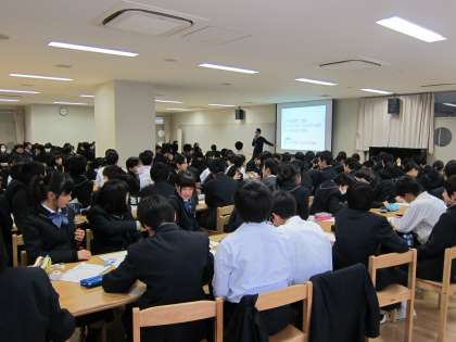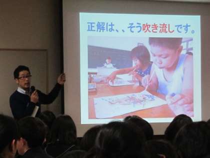 29日6校時、1年生「教科『日本語』」哲学の授業で、かつて青年海外協力隊の一員としてベトナムの子供たちのために、美術を通して情操教育普及のために2年間現地に滞在した教員の様々な体験談を聞き、「人とのかかわりを考える」という内容項目の「ベトナム、ワンダーランド」という授業が行われました。