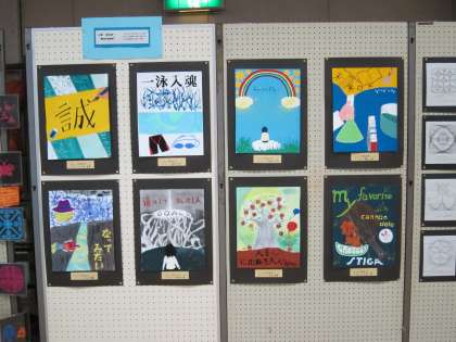 小中交流の一環として本校の生徒の美術作品も展示されています。