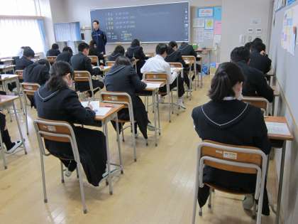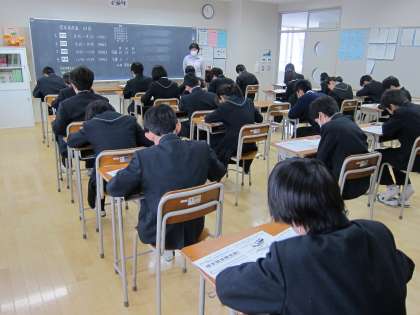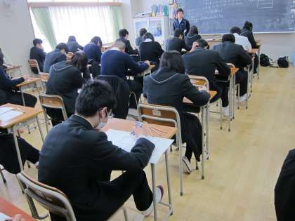 25日から今年度最後の定期考査、学年末考査が始まりました。25日は国語、英語、音楽の3教科でした。皆、真剣に試験問題に向かっています。