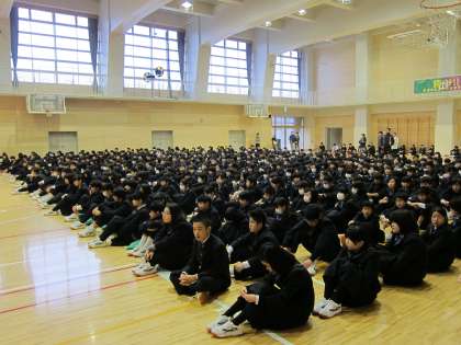 7日、今年度最後の全校朝礼がありました。校長先生からは3,11を忘れないこと、最高の卒業式にしようという話、そして人格の完成の「感謝」についてのお話がありました。