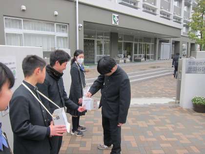 3月10日〜12日まで、朝の登校時間に生徒会役員会による募金活動を行いました。東日本大震災で、まだまだ復興までに時間もお金もかかる被災地の皆さんのために世田谷中の生徒、教職員の善意が役立つことを願っています。