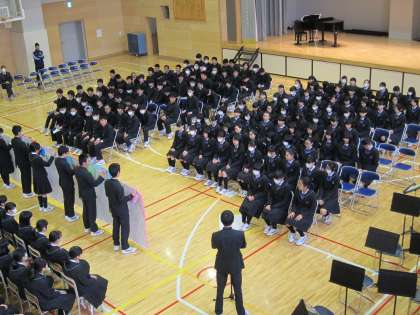 3年生からは一人ひとりが後輩のために書いたメッセージとお礼の言葉、合唱(「手紙」)が贈られました。