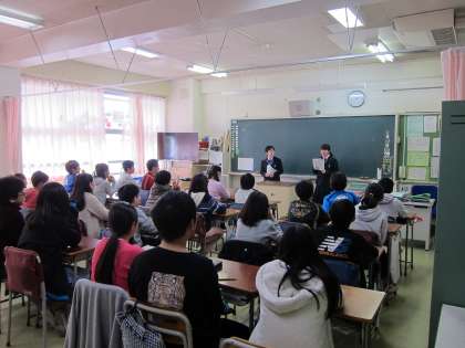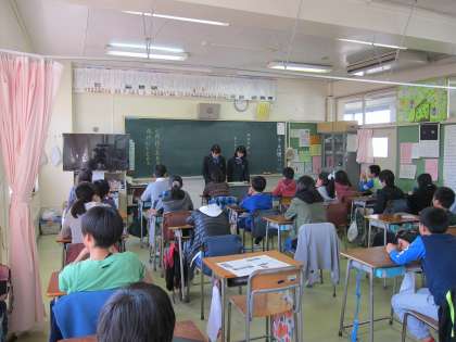 3月16日、17日の両日、卒業目前の3年生が自分の出身小学校を訪れ、もうじき中学生になる小学6年生に向けて、中学校生活についての説明を行いました。小学校6年生からもたくさんの質問が出されました。