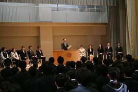 4月6日、今年度世田谷中学校に着任された教職員の方をお迎えする着任式に続き、1学期始業式が行われました。