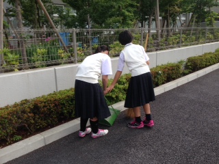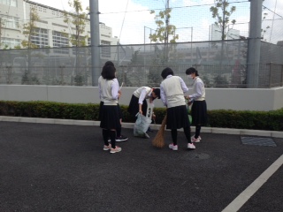 第一回目は、各学年のA組の生徒が集まり学校周辺の清掃活動を行いました。
