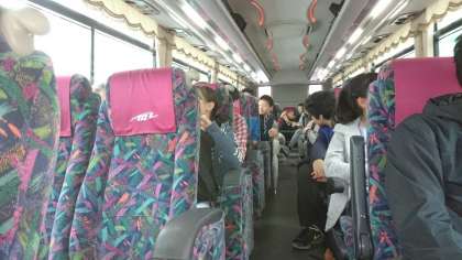 あいにくの雨天ですが、出発しました。 バス内の様子です。