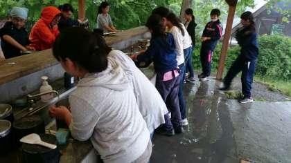大方食べ終わり、片付けタイムです。 この後オリエンテーリングを実施予定。