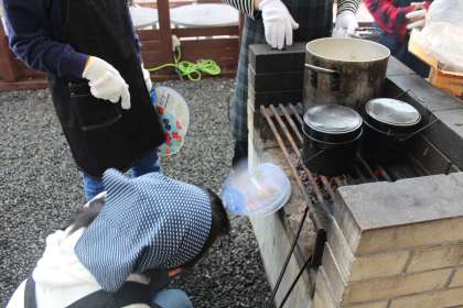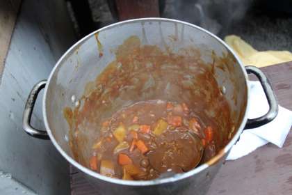 火が消えてしまい焦る班、野菜がうまく切れない班、飯ごうの中が気になって何度もふたを開けてしまいなかなかごはんが炊けない班……。普段料理をしない生徒もいる中、現地スタッフの方や先生方にも手伝ってもらって、何とかカレーを完成させ、おいしく頂くことができました。