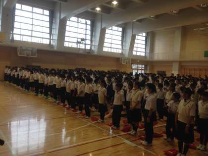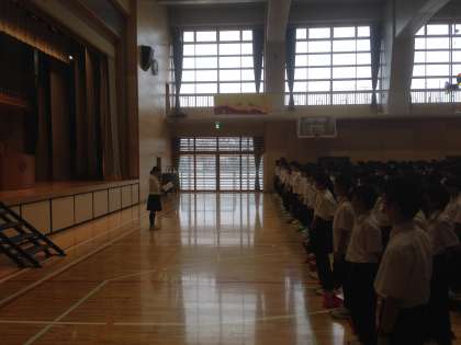 その後、囲碁将棋部、サッカー部、バレーボール部の表彰が行われ、最後に、美化委員会から今月の活動の重点である「美化デーの実施」の結果報告がありました。