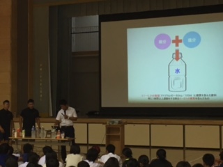 国士館大学の先生が熱中症対策について講義をしてくださいました。学生による実演や熱中症対策五カ条など、夏を乗り切る心得を学びました。