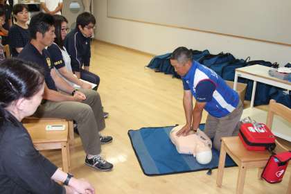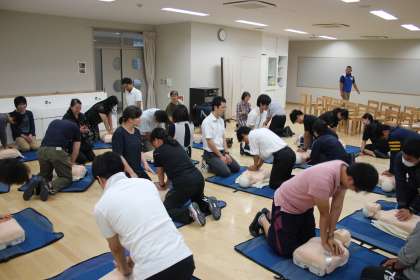 6月28日(火)の放課後に、教員の研修会が行われ、外部より講師の先生をお招きし、心肺蘇生法を学びました。実際のAEDを使用している映像を見たり、AEDの使い方や、胸部圧迫の実践も行いました。事故は起きないことが一番ですが、万が一に備えることは大切です。本日の研修は教員としてだけではなく、人として身につけておくべき大切なことを学ぶことができました。