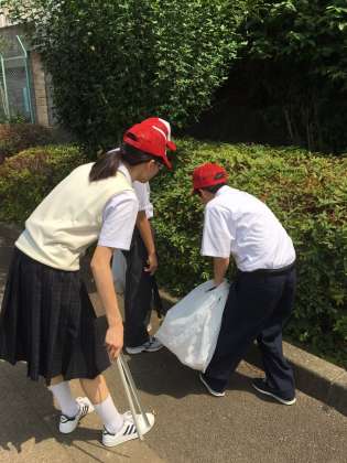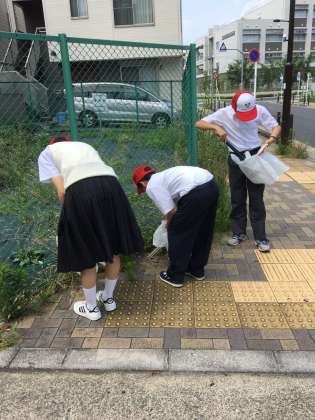 7月14日の午後、ひなぎく学級の生徒たちが地域の清掃ボランティアをしました。