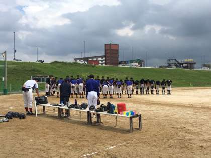 決勝進出をかけて、練馬区立田柄中学と対戦しましたか、残念ながら負けてしまいました。午後に予定された三位決定戦は激しい雷のため順延になりました。
