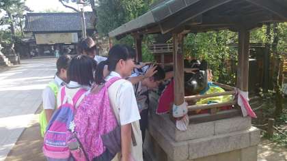 北野天満宮では学業の神様を祀っているので多くの受験生が訪れています。また、牛を撫でてさらに御利益を得ようとみなさん必死でした。三日目に行く班も多いようです。