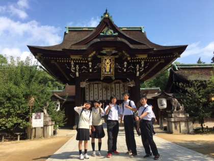 今日は朝から晴天に恵まれて、タクシー行動をしてます。北野天満宮で受験の神様にみんなでこれからお参りです。