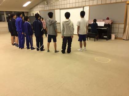 学園に到着し、来週火曜日の学芸発表会の猛特訓!演劇と合唱の完成を目指します。