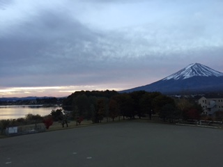 移動教室二日目です。朝の富士山と河口湖がとても幻想的な朝です。でも、とても寒いです。今日は、オリエンテーリングの予定でしたが、三日間目の天候悪化が予想される事と生徒の安全確保を考え、予定を一部変更し、 富士山五合目の奥庭荘や三湖台へ行くことになりました。
