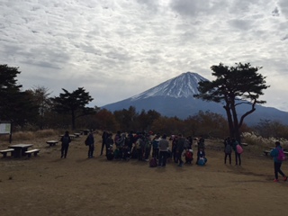 雲は多いですが、富士山は綺麗に見えます。紅葉も見頃です。これから、富士山の五合目奥庭荘へ向かいます。