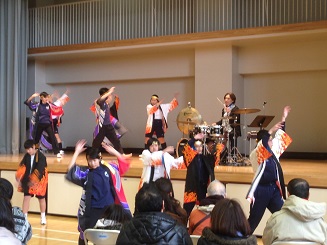 第1部(Friends)では、堀越彰さんのドラムのワークショップ、子育てトークの他、本校吹奏楽部や双葉学級・世田谷笑in若林(地元よさこいチーム)との共演がありました。