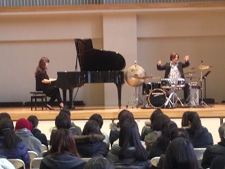1月14日、国際的に活躍するピアニストの三舩優子さんとドラマーの堀越彰さんをお招きし、第3回家庭教育学級が開催されました。