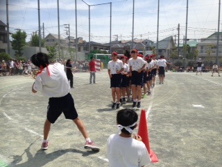 1年全員リレー、2年学年種目(大縄とび)が行われ、現在3年全員リレーが行われています。