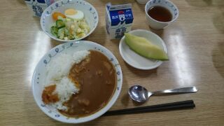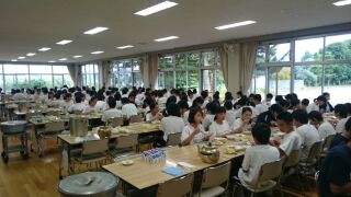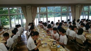 夕食中の様子です。みんなお腹が空いているのかカレーがどんどん減っていきます。食事係の人たちもテキパキと準備していました。