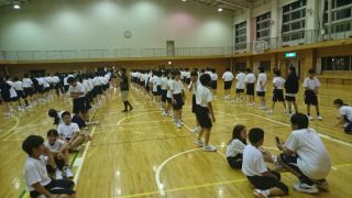 学年レクです。レク係が中心となっ企画・運営をしています。ジェスチャー伝言ゲームやバースデーゲームでは言葉を使わず相手に伝える難しさを体感することができました。このあとは班長会議と部屋会議をして、就寝になります。