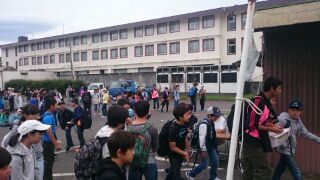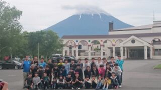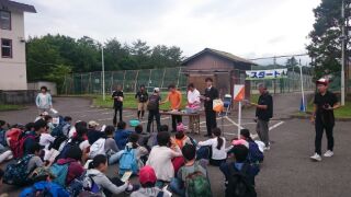 緑の休暇村に到着し、記念撮影をしました。これからオリエンテーリングが始まります。どの班が優勝するか!?